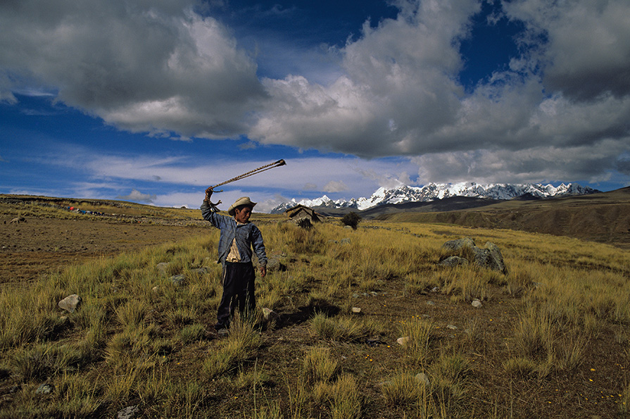 1 Tinke, Junge mit Steinschleuder