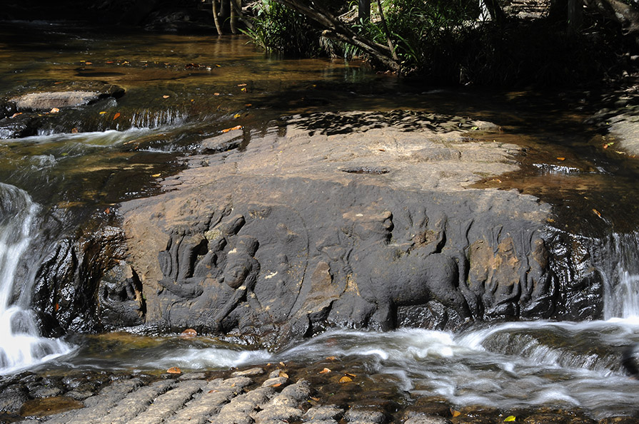17 Kbal Spean, Felsskulpturen im Fluss