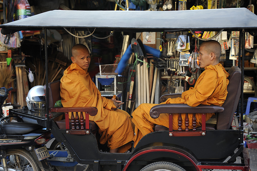 24 Sein Reap, Mönche im Tuc Tuc